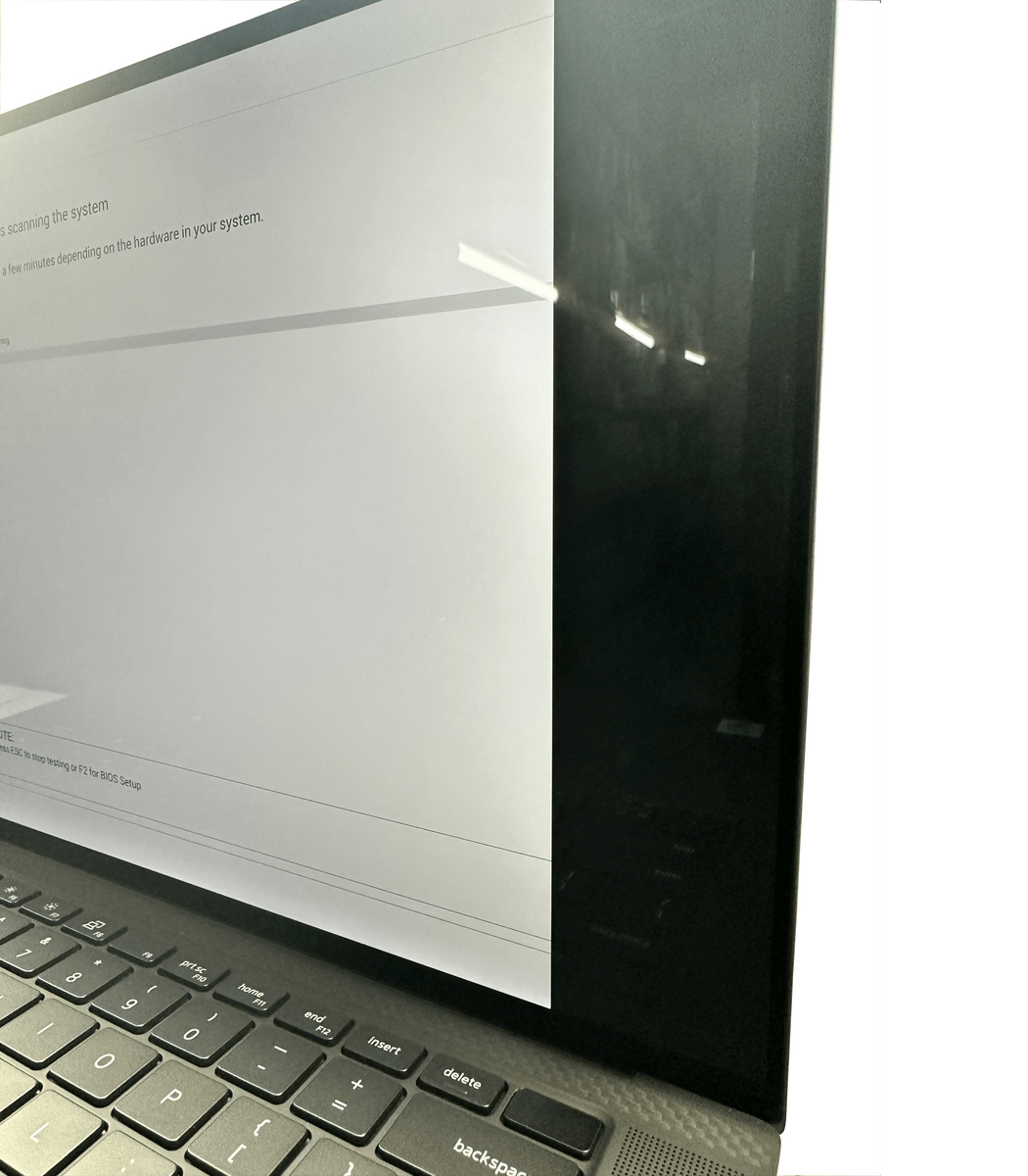 Laptop posiada defekt w postaci pionowego czarnego paska na wyświetlaczu.